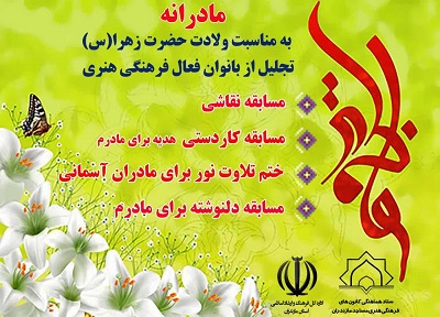 برنامه هاي متنوعي توسط کانون هاي فرهنگي هنري مساجد مازندران به مناسبت ولادت حضرت زهرا(س) با عنوان «مادرانه» جهت ترويج فرهنگ فاطمي اجرا مي شود.