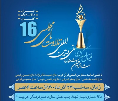 برگزاری فینال شانزدهمین جشنواره ملی و بین المللی تلاوت مجلسی به میزبانی مازندران